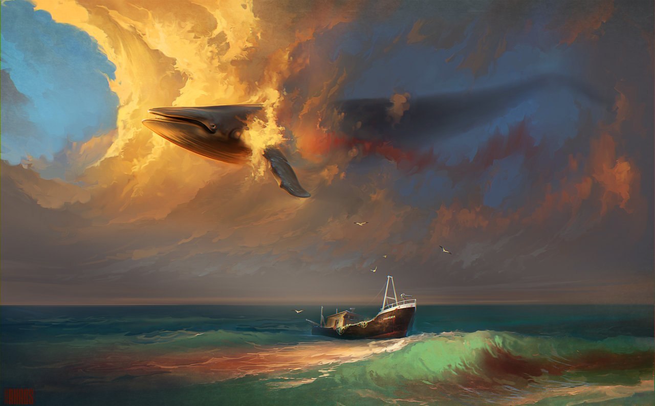 В качестве иллюстраций: 1) "Кит", автор Артем Чебоха 2) Наталья Павловна Палей, больше известна как Натали Палей — французская манекенщица и актриса. Княжна из дома Романовых 3) Камиль Писсарро. Бульвар Монмартр ночью. 1897 4) фото из серии "Не срослись плавниками", автор Антон Конашук