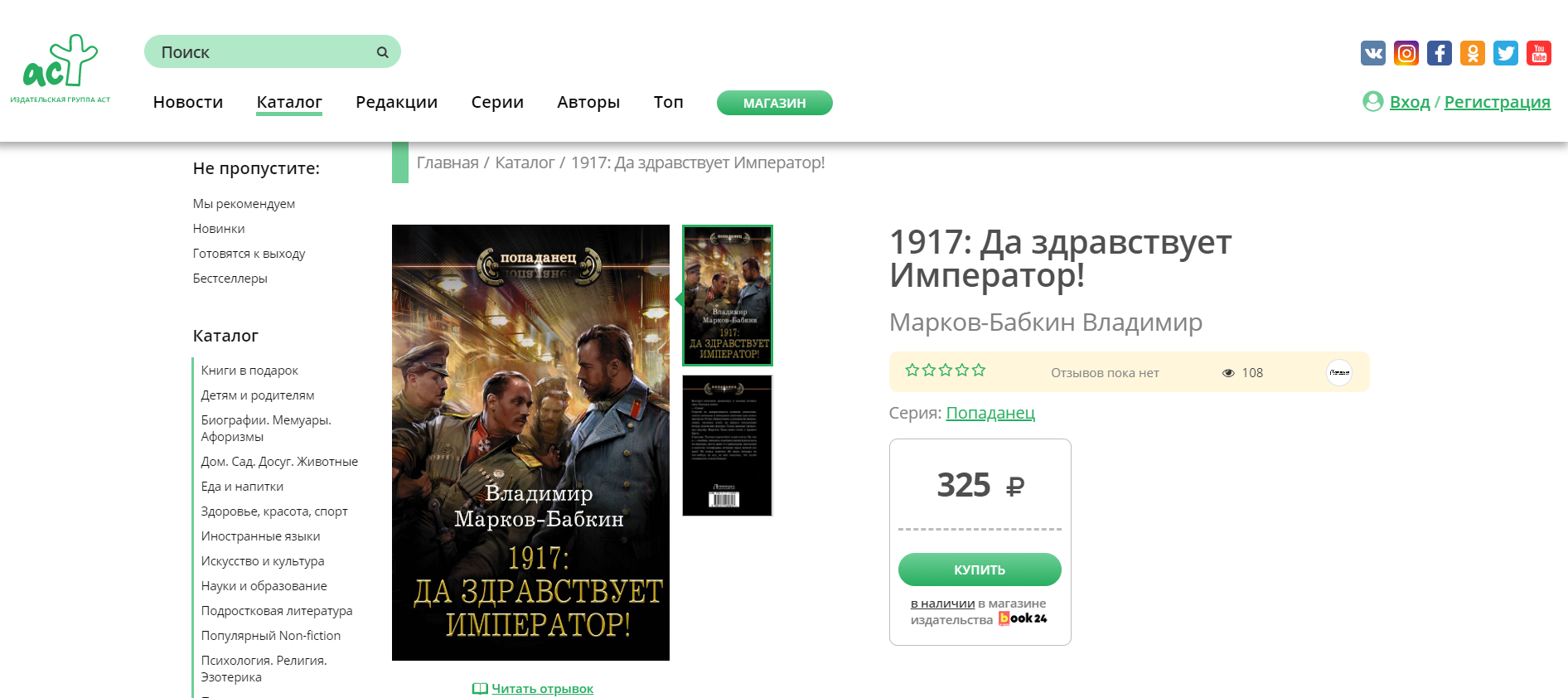 Завтра поступает в продажу бумажная версия романа "1917: Да здравствует Император!"