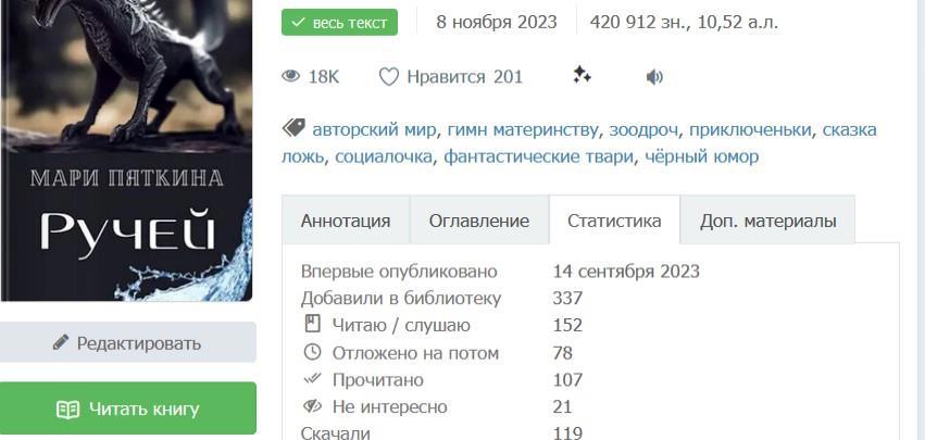 Загуглила название и, кроме какого-то дикого количества сетевых сайтов, обнаружила озвучку на Ютубе, отчего повторно офигела. Читает ИИ, со странными интонациями, неправильными паузами, вообще без пауз, с неверными ударениями, отчего эмоциональные моменты гасятся, и это большой недостаток озвучки ИИ, но я всё равно благодарна людям, которые этим занялись и сделали. Чел, если ты с ат, то спасибо, маякни, кто ты.