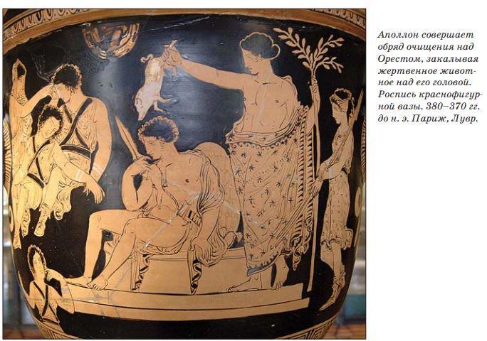 Чтобы спастись, убийца должен ритуально очиститься. Это могли сделать в храме жрецы, а мог и царь. Царь — фигура сакральная, связанная с богами, у него есть сила призвать богов на помощь. Когда боги видят, что убийца раскаивается (хотя бы на словах), они отзывают эриний.