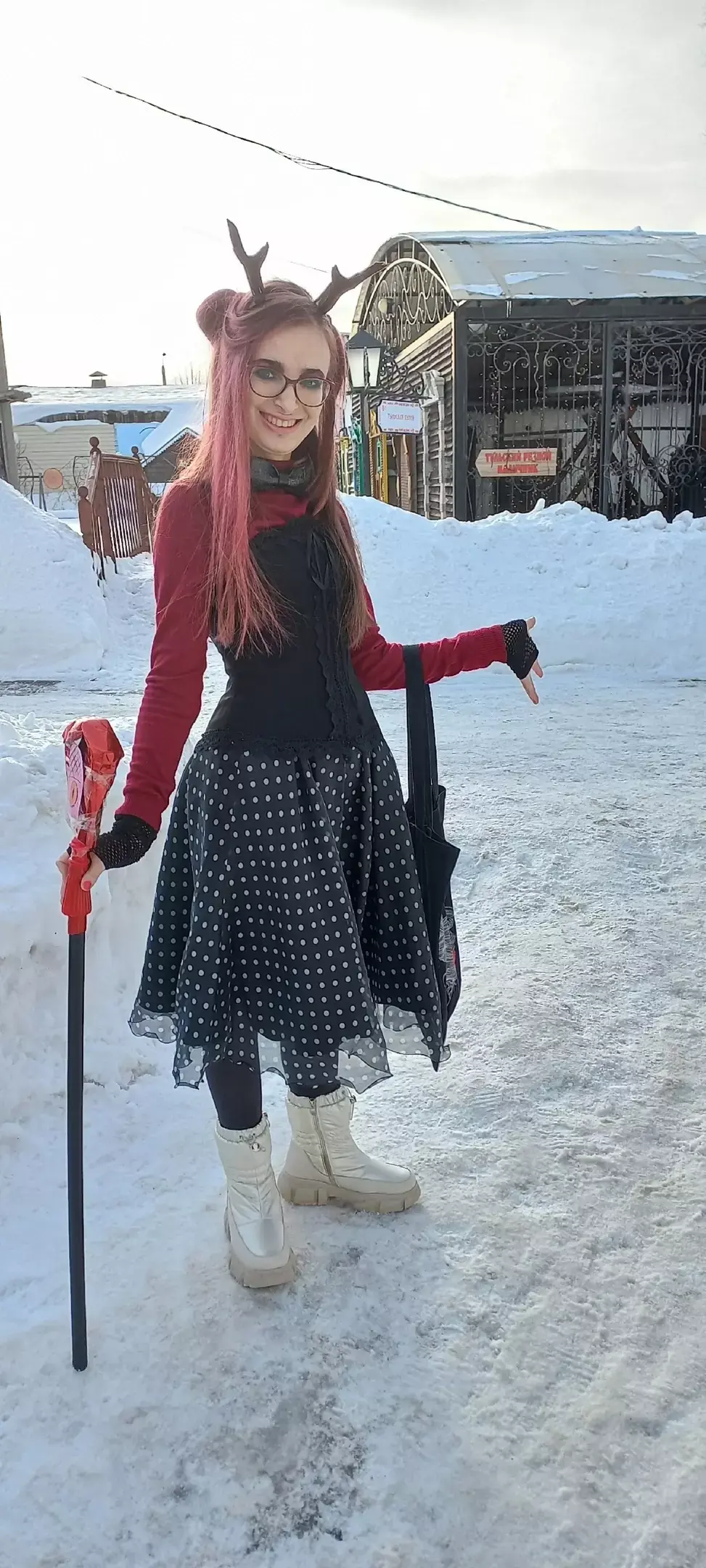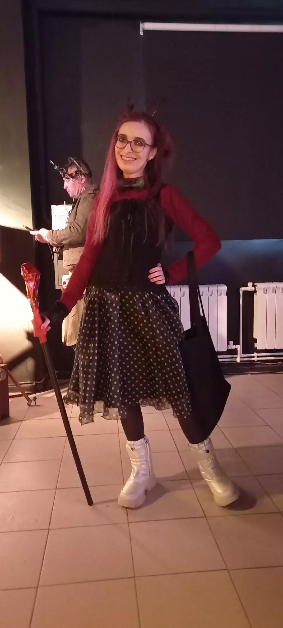 Вы спросите, а где я. А я отвечу, что я в красном, косплею Аластора из Хазбина)))