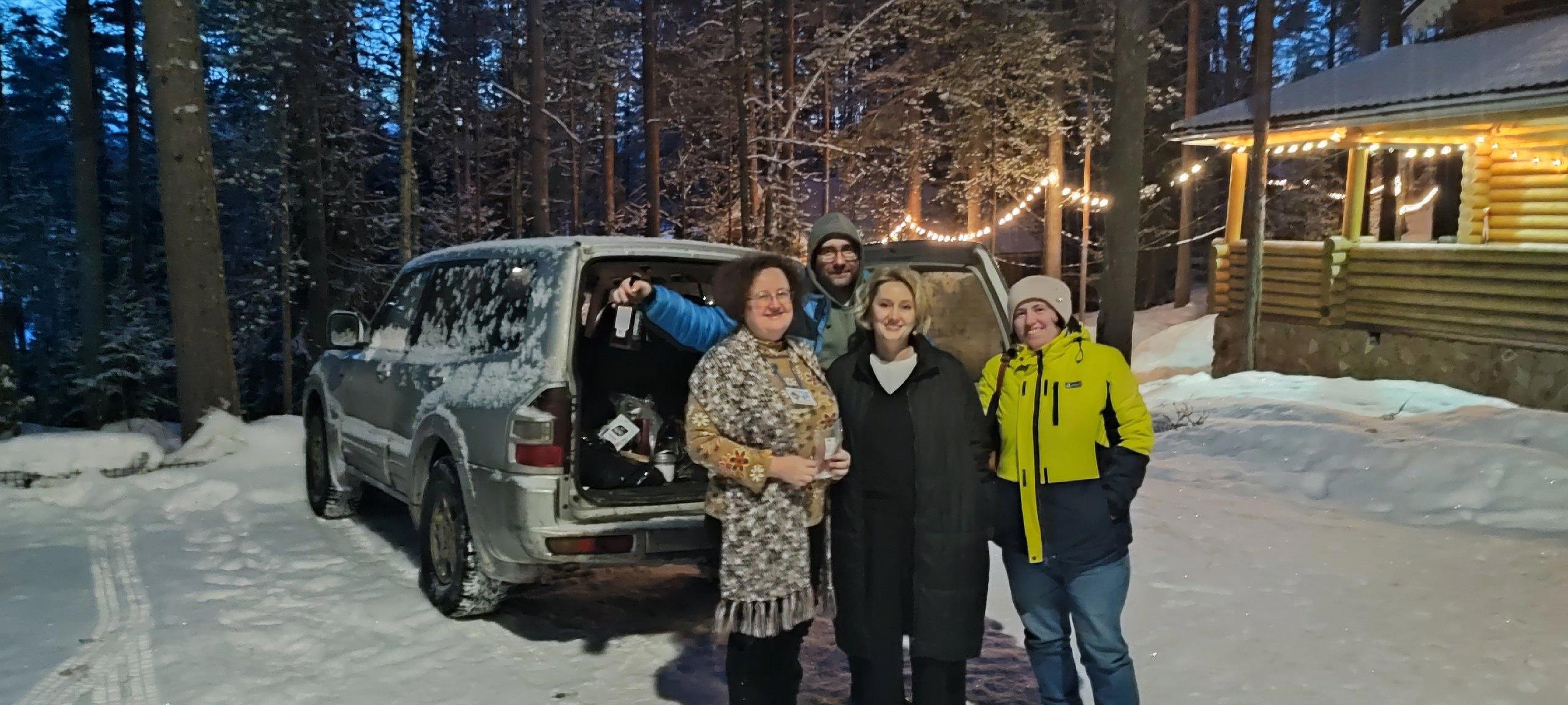 1) Дорога туда так себе. Нет, правда. Снег, снег и еще раз снег, кое-как убранный и не слишком-то раскатанный любителями лыж и зимних вылазок на природу. И не предназначенная для оленьих троп машина, да еще и загруженная по самое не балуй литераторами разных возрастов и калибров, садится на пузо на раз-два.