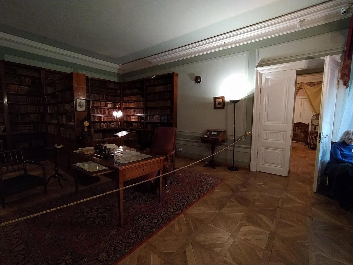 Одно только название, что большая квартира. Но представьте, сколько там проживало и постоянно ходило людей. Начнем с кабинета: Пушкин на Мойке работал прямо за стеной детской, где бегали четверо маленьких детей. Также там все время были минимум одна няня, кормилица, часто к детям заходила другая прислуга, но хотя бы не через кабинет.