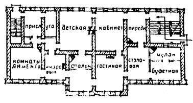 Но в самой квартире, в комнате для прислуги, постоянно проживали две няни, кормилица, лакей, две горничные, старые слуги. Остальные жили в пристройках и полуподвалах