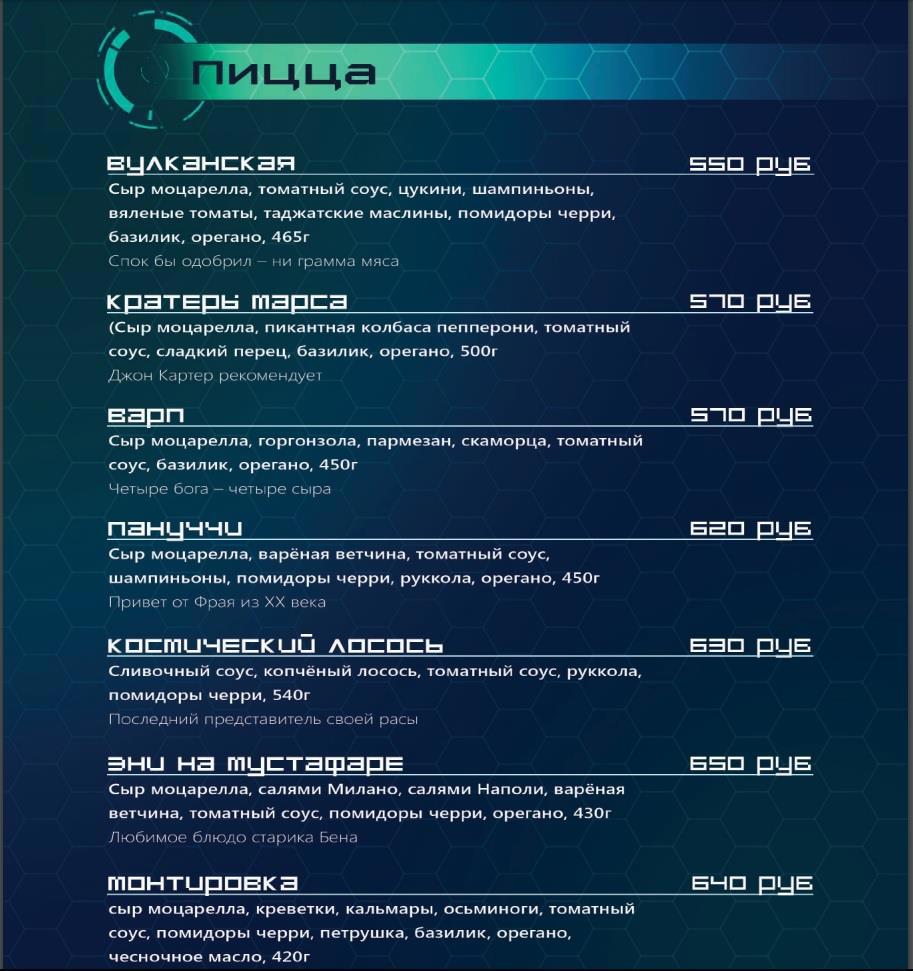Трапезничали необычной космической кухней, фрагмент меню я привожу тут.