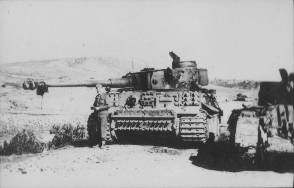 На фото тот самый подбитый "Тигр" номер 231. Расстреляли его в борт из двух 57-мм, кторые находились в 500 и 350 метрах. Рядом подбитый накануне "валентайн".