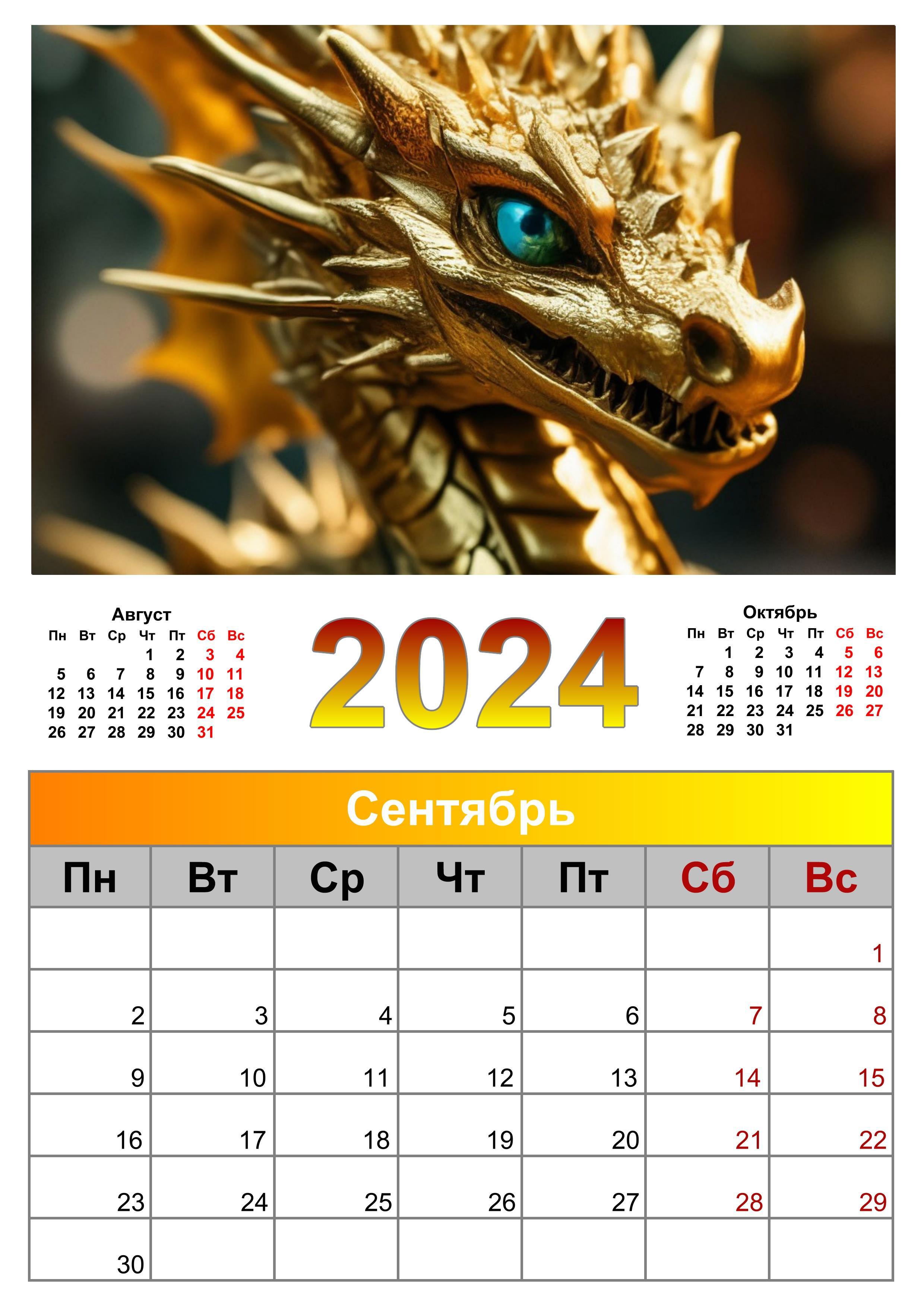 Календарь сентябрь 2024