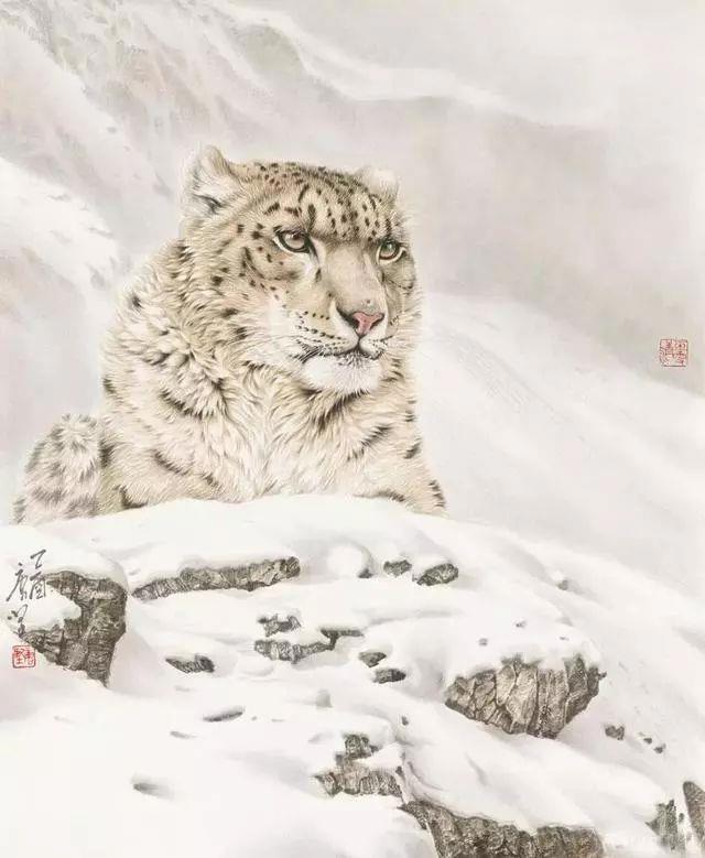 Снежный фон в картинах Тан Цзиена помогает выразить гордое одиночество и внутреннюю силу людей и животных.