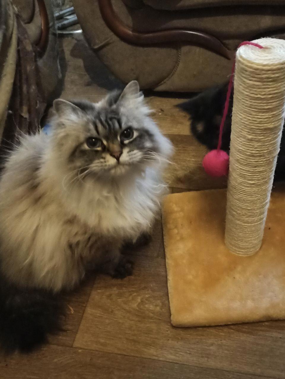 Вот, скажем, разнесли две красавицы когтеточку в хлам. Одни лохмотья остались от дорогого их сердцам предмета, да и лохмотья-то ушли в огонь камина... грустно, девицы!