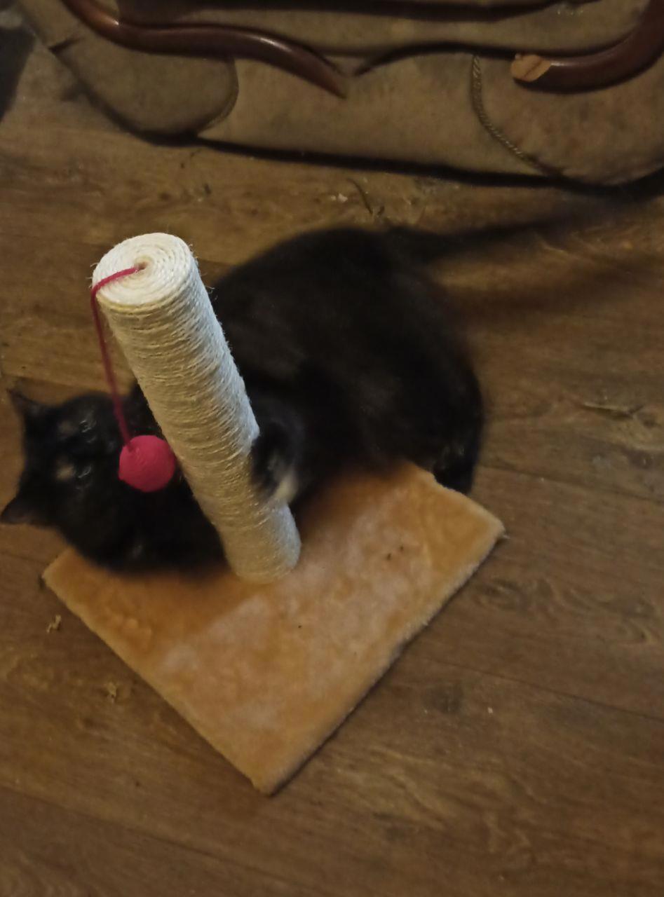 Впрочем, люди все-таки не законченные бестолочи. С трудом, но дошло до ее тупой башки, чего хотят от нее настоящие хозяйки квартиры. И когтеточку она все-таки купила. Со звенящим шариком на ниточке в качестве бонуса. Ладно, можно ее и простить...