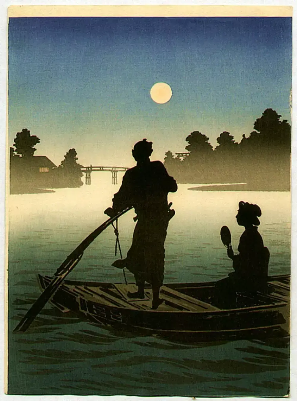 Цветение сливы и луна из книги Гора Фудзи весной, Кацусика Хокусай. (Haru no Fuji) 1803 Чикагский институт искусств