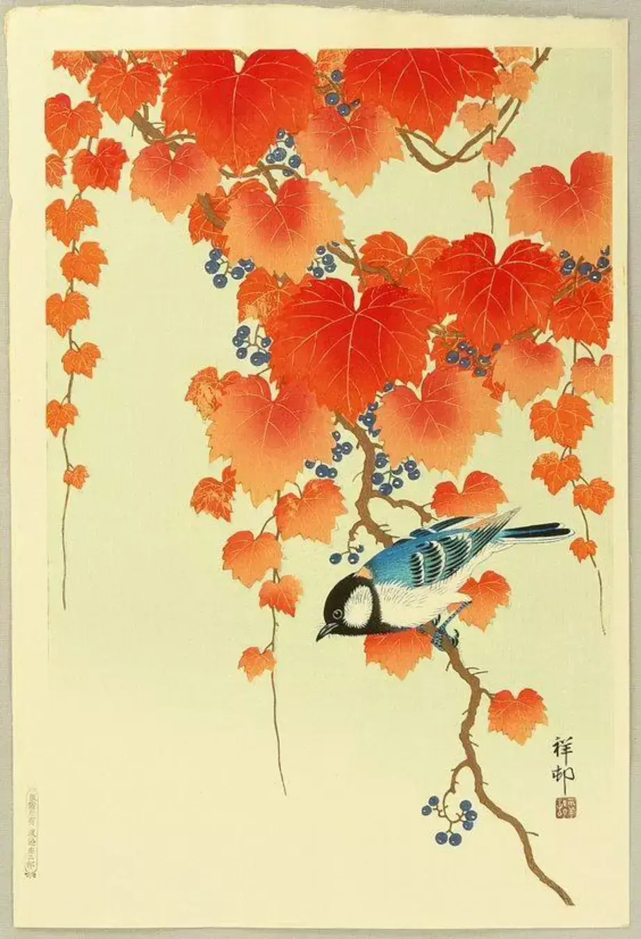 Птицы на Диком винограде или Красной Айви, Охара Козон 1935