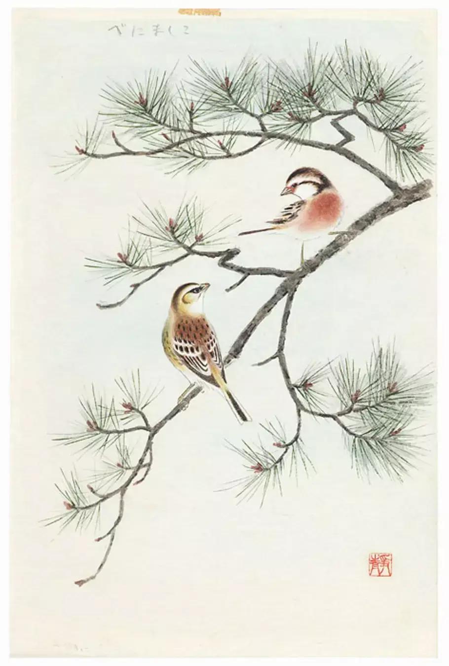 Птицы на сосне, 1950, Ашикаго Шизуо (1917 - 1991)