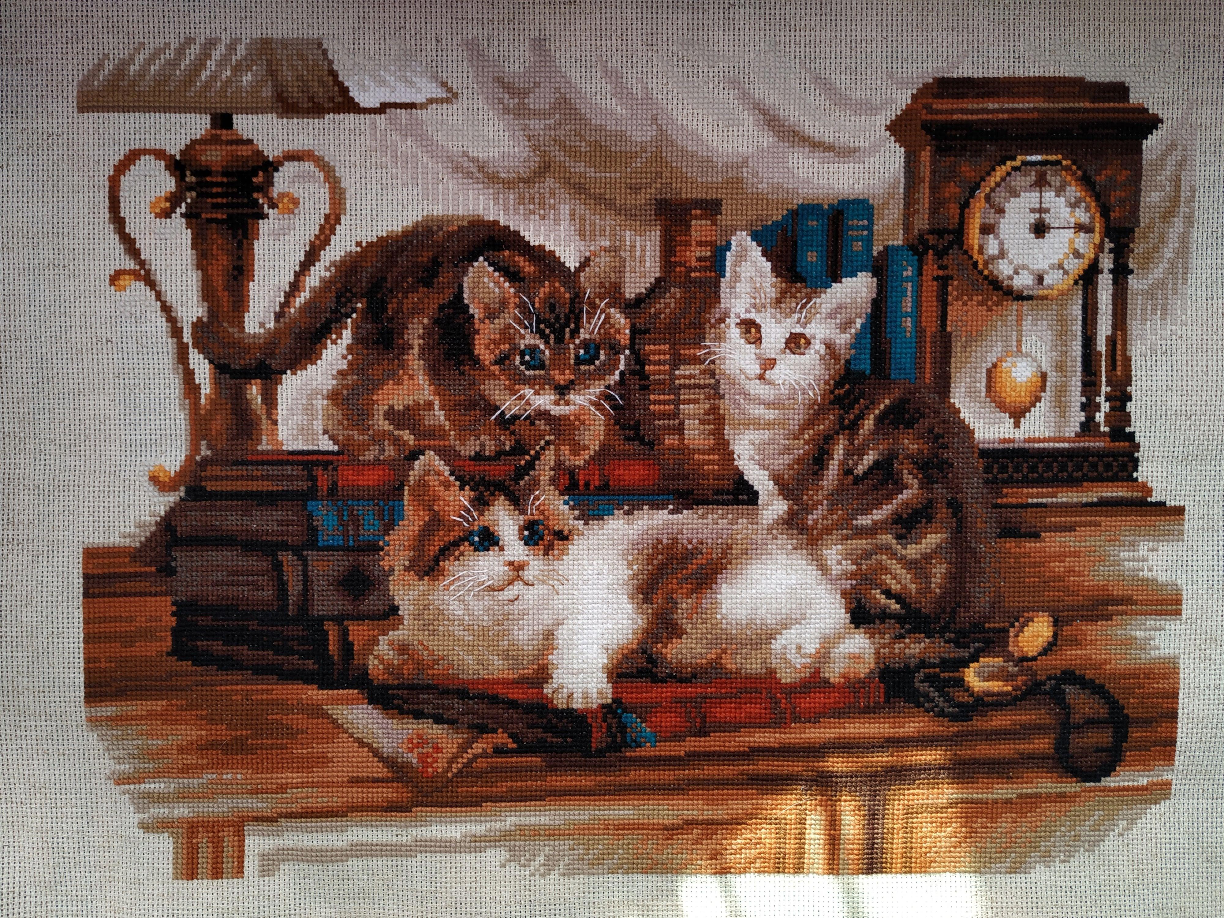 Автор: Ари ВидерчиОчень мало на свете людей, не любящих котиков. Трудно их не любить. Со мной котики рядом всю мою жизнь. Но мне мало живых, я люблю их ещё и вышивать. От десятков миниатюрок для открыток и разных милых мелочей, в большинстве раздаренных, до картин. Дома висит одна любимая. Она вышита шерстью)