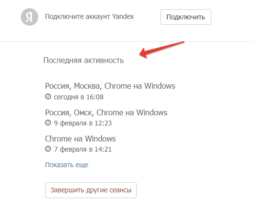 Мы добавили раздел Последняя активность в разделе Безопасность.
