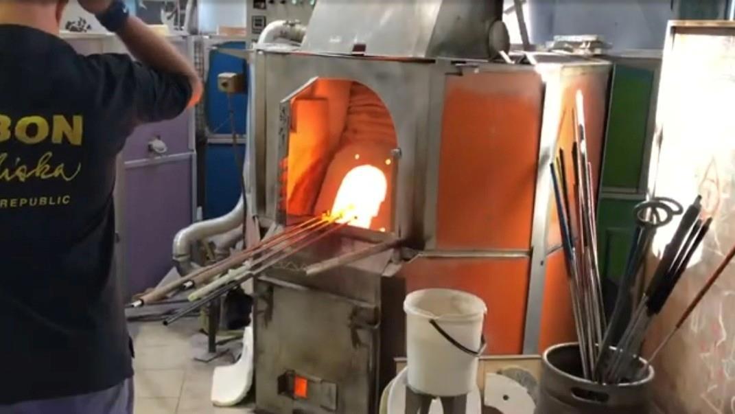 У чехов стекло быстро застывает, вот венецианцы используют другой состав и там у стеклодува времени в 3 раза больше. А в чехах чуть больше минуты и оно уже остыло. В общем мастеру нужно быстро соображать и быстро шевелиться.