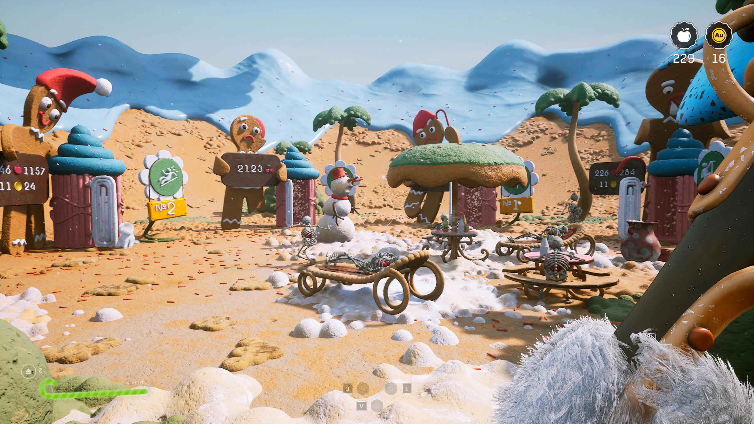 Там же можно потратить яблоки у Сундука, прикупив оружие и улучшения, либо отдать золото Тёте Моте за апгрейд оружия.