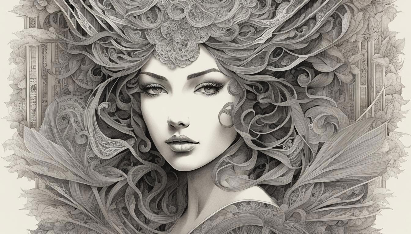 Бумажное искусство отражает тонкость и глубину слов, как и лицо женщины, вырезанное из бумаги, окруженное страницами сценариев и стихов, что напоминает о взаимосвязи визуального и литературного творчества.