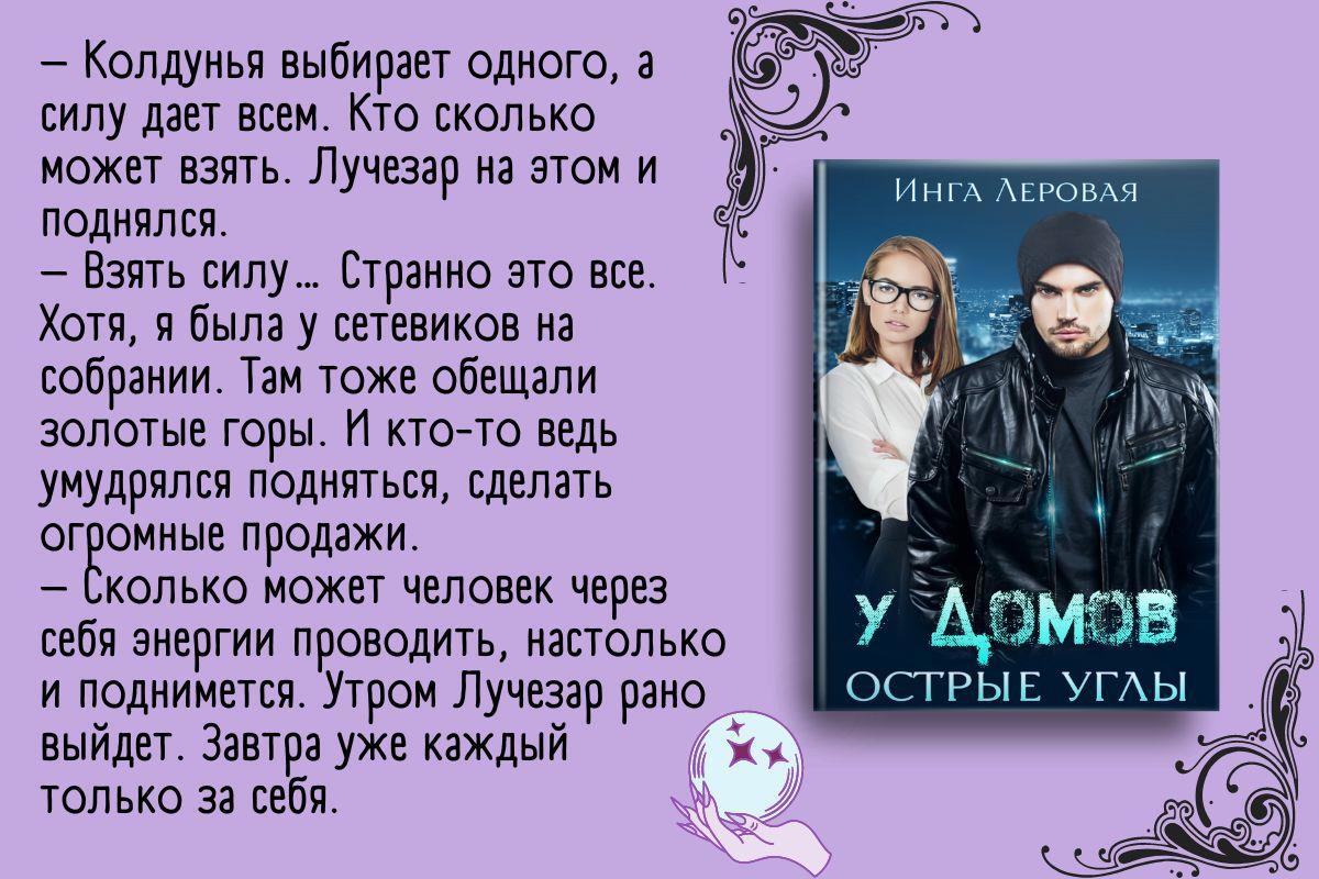 Инна из книги "У ДОМОВ ОСТРЫЕ УГЛЫ" (сегодня скидка) получает необычный Дар, становится экстрасенсом. Собирается покарать убийц, только все не так однозначно, как ей виделось. Любые сверхспособности это ответственность и тяжелая ноша. Вот и Инна заплатила высокую цену за свой Дар. Инне досталось от меня плохое зрение, операция на глаза и, собственно, "вид занятий". Я сама несколько лет вела прием как экстрасенс.