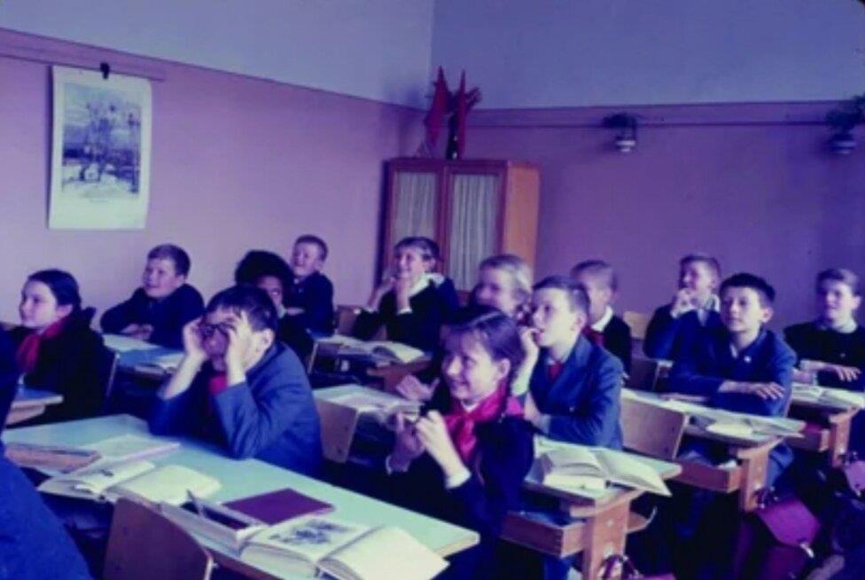 Фактически это могла бы быть большая американская городская школа, если бы не обязательная гигантская статуя Ленина перед ней. Школа была сложена из белых бетонных блоков. Внутри было светло и просторно, много растений и досок объявлений. Меня восхитила детская одежда: каждый ребенок носил форму. На девочках были одинаковые коричневые платья под одинаковыми коричневыми передниками. На мальчиках были плохо сидящие серые куртки и длинные серые брюки. Почти все без исключения носили красные платки «пионеров», это, конечно же, бойскауты России. Единственным забавным вариантом были туфли. Они были всех типов, цветов и состояний.