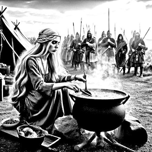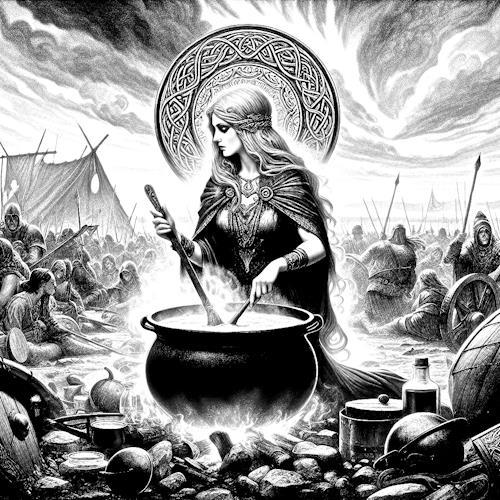 Дагду тоже делал легко, подошел бы каждый из восьми, кроме украинца. Выбрала рыжего, но... на переднем плане прямо перед котлом красовалась бутылка портвейна с этикеткой. Замазала кое-как, и тень от нее тоже.. Но вот этот нифига не ар-нуво.