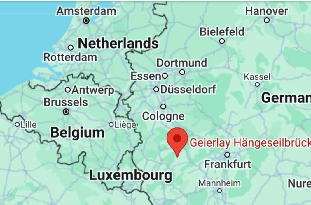 N.B. Гайерлай - подвесной мост в низкогорном хребте Хунсрюк в Западной Германии. Он был открыт в 2015 году. Его длина составляет 360 метров (1180 футов), а высота над землей - до 100 метров (330 футов). По обе стороны моста расположены деревни Мерсдорф и Сосберг. Ниже моста по долине протекает ручей Мерсдорфер-Бах. Ближайший город Кастеллаун находится в 8 км к востоку. Столица штата Майнц находится в 66 км к востоку.