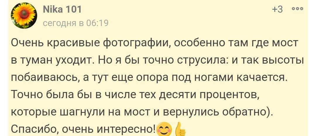 Интересно, что двадцать процентов туристов, которые приезжают пройтись по мосту, даже не ступают на него. Еще десять процентов ступают на мост, но возвращаются!