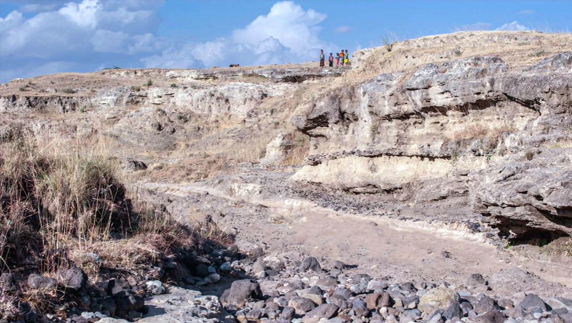 Однако сейчас я не про кино, хотя всё же про оружие. Оружие каменного века. Его откопали совсем недавно в товарных количествах в Эфиопии, в долине Аваш. Итальянские археологи назвали это место очень скучно – участок Симбиро III. Выглядит этот обрывчик вблизи речки вот так (сам не видел, врать не буду):