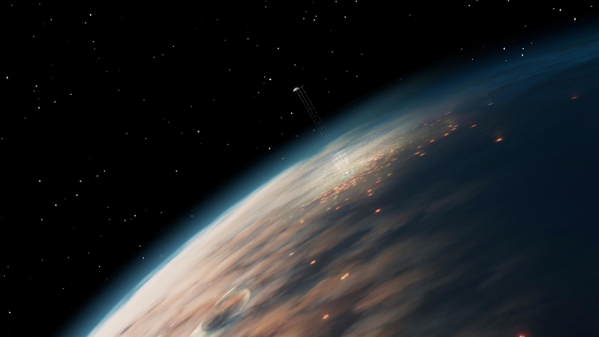 Лифт очень маленький, потому как тут та ещё задача - надо как-то показать масштаб, и либо от планеты будет небольшой кусок, либо лифт будет совсем не видно.