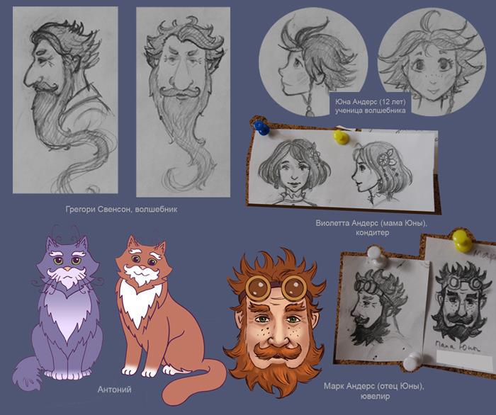 Июнь 2016г. Несмотря на большое количество работы и проектов, персонажи "Ночного похода" зудят у меня над ухом и требуют продолжения своей истории. Рисую их ещё раз и даю имена. А у Юны почему-то меняется возраст.