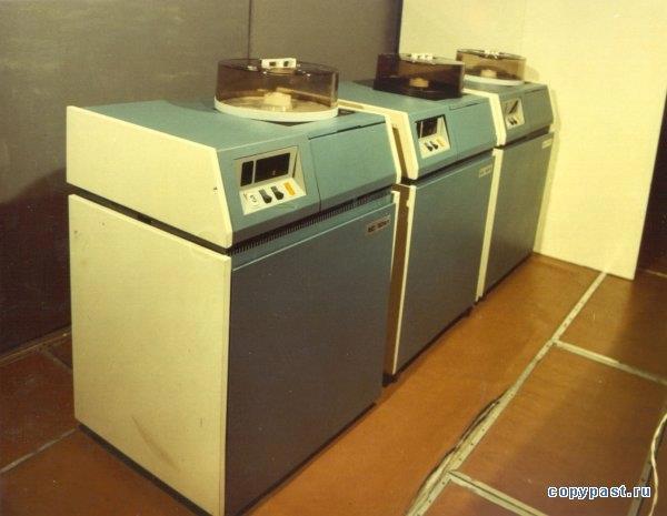 Представьте себе, глубокая ночь. Всё спокойно. Оператрицы, лениво поглядывая на консольные мониторы, пьют чай. И тут очередное задание в очереди требует диск. И если вы думаете, что диск — эта такая маленькая коробочка, к которой подключаются два проводка, то вы глубоко заблуждаетесь. Нет, это вот такая конструкция, стоящая на полу и высотой где-то по пояс: