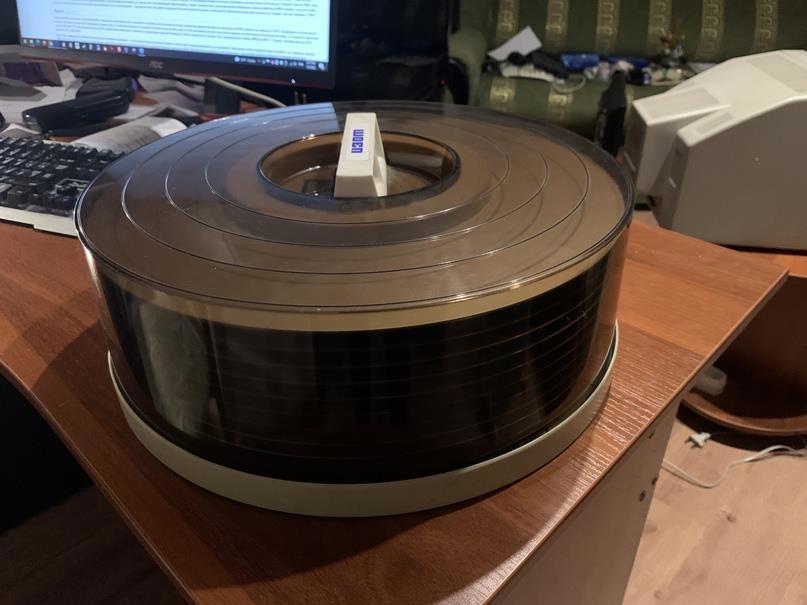 Только это ещё не сам диск, это так называемый дисковод или накопитель на сменных магнитных дисках. Сами же диски — а точнее, пакеты магнитных диакоб — в него вставляется (дин за раз) и выглядят вот так: