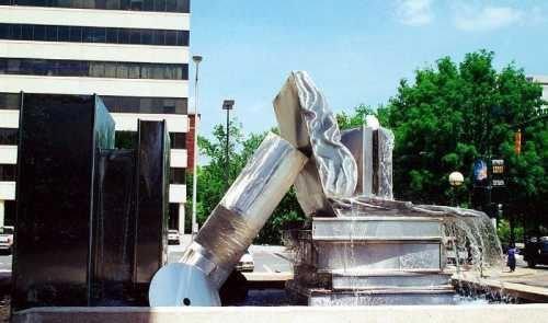 Автор - Джим Коллинз (Jim Collins). Скульптура весом в одну тонну выполнена из нержавеющей стали.