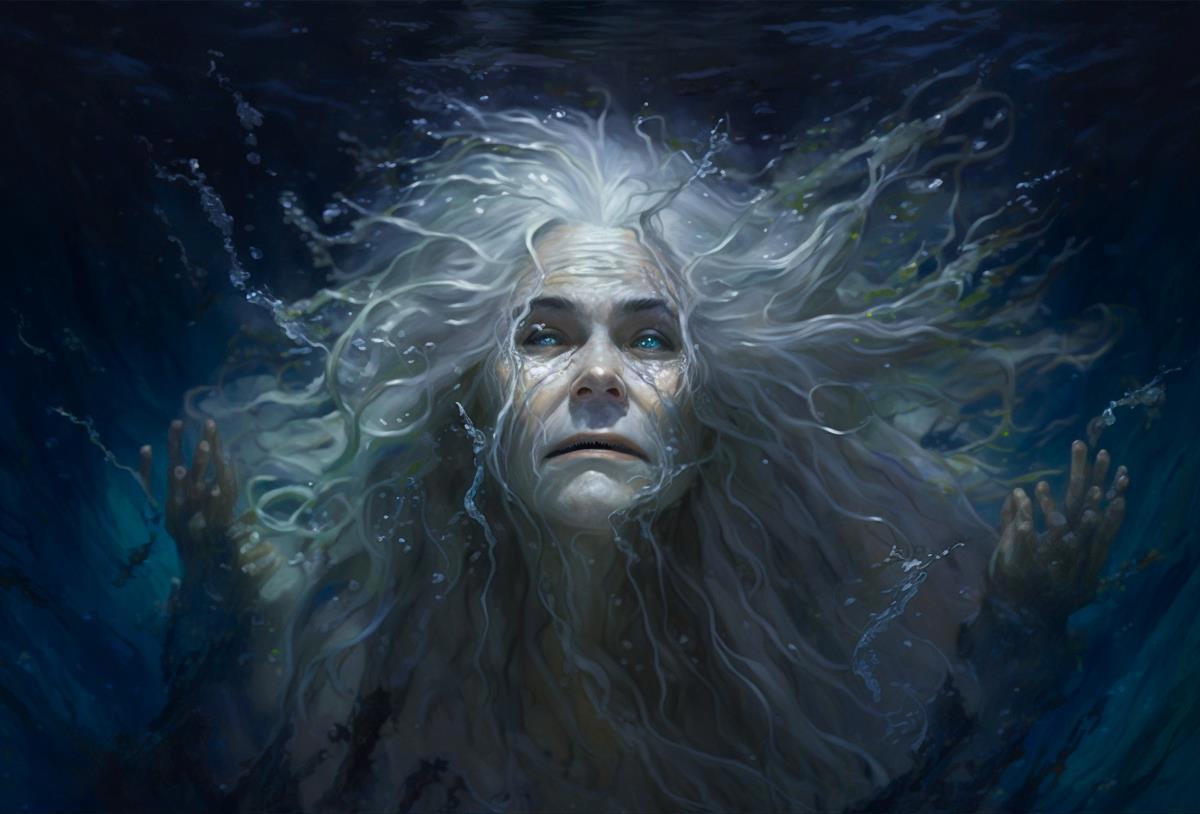 Лорна лежала на белом песке, раскинув в стороны руки, и придонное течение шевелило её седые космы. Голая сморщенная старуха с грудью, похожей на два серых лоскутка и впавшим животом. Пройдёт совсем немного времени и её тело напитается силой, кожа станет гладкой и упругой. Изменения уже начались. Впалый беззубый рот растянулся почти до ушей в дьявольской улыбке. Губы истончились. Между пальцами рук появились тонкие перегородки. Наступило утро. Хозяин вытащил из грота одного из матросов и унёс в свою пещеру. Бедняга на свою беду оказался выносливым, и его крики долго терзали мои уши. Насытившись, Хозяин лёг спать. Остальные охотники тоже расползлись по своим норам. Кроме Нэрна. Старый чёрт всё вьётся над ямой, смотрит, как тело моего внука жрут грешники ада в аду.