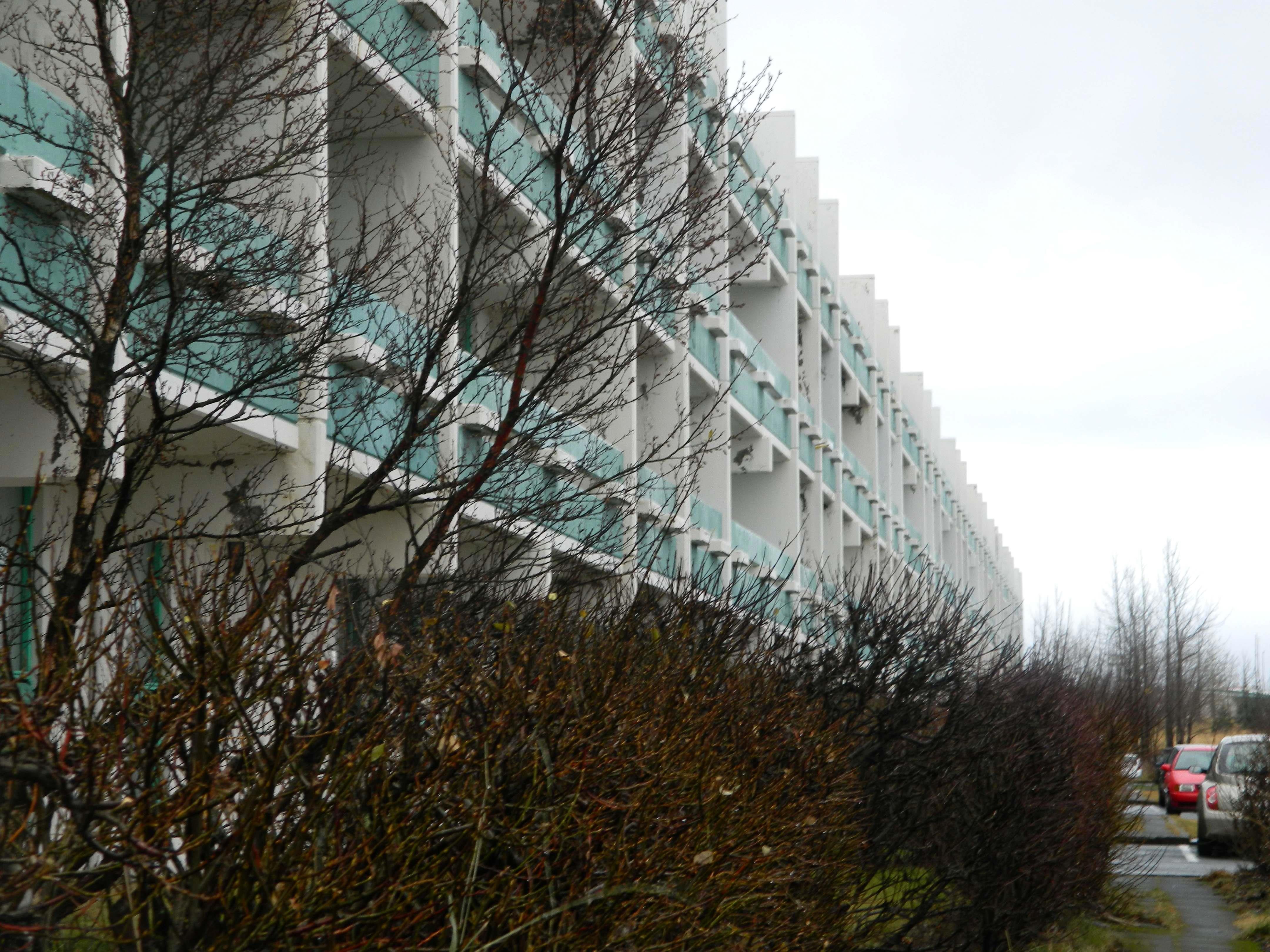 Его принято не любить. Ну или любить с оговорками, потому что в каждой столице должны быть свои гетто и районы с мигрантами, вот и пришлось Рейкьявику таковым назначить один из своих пригородов. Я его полюбил с первого взгляда, случившегося, когда он выплыл из сонной синей-синей сырой ночи навстречу мне и хмурому глубоко осеннему утру. Полюбил нежно и надолго и потом вскакивал в автобус и ездил уже как на свидание. (А друзья ездили туда за гречкой, которая не настоящая, а польская, зеленая.)