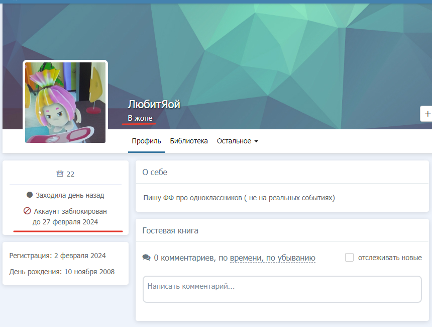 Судя по всему, нога возмездия таки отвесила пинка. Но вы всё равно подписывайтесь на юное дарование, вдруг ещё чем порадует.