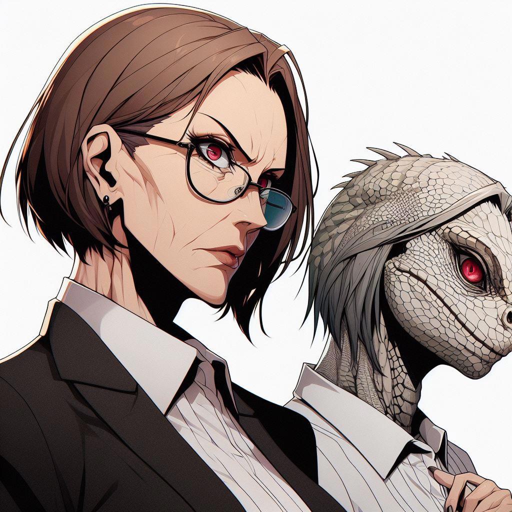 Тетенька, как читатели помнят, неприятная и крайне опасная. Первая картинка по впечатлению очень даже то, что нужно, но ящеричный компонент вынесен в отдельный модуль, то есть как бы подразумевается, а он у персонажа был на лице.
