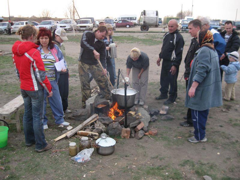 Вот нынешние обитатели Аркаима (паломники и туристы) готовят кашу.