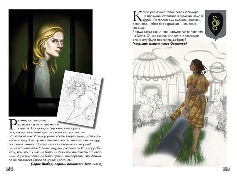 Если вы не знаете цикл, артбук «Время для дракона» про него расскажет, проведёт по миру, по истории приключений главных героев, очертив ключевые сюжетные вехи, но оставив много важных вещей за кадром – чтобы потом интересно было прочитать книги, если захотите.