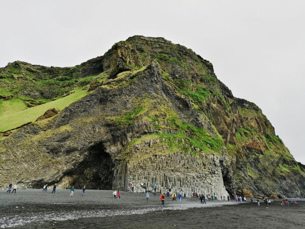 Вчера в Рейнисфьорде был сильный прибой. Волны доходили до парковки над пляжем и поднимались далеко вверх по скале.