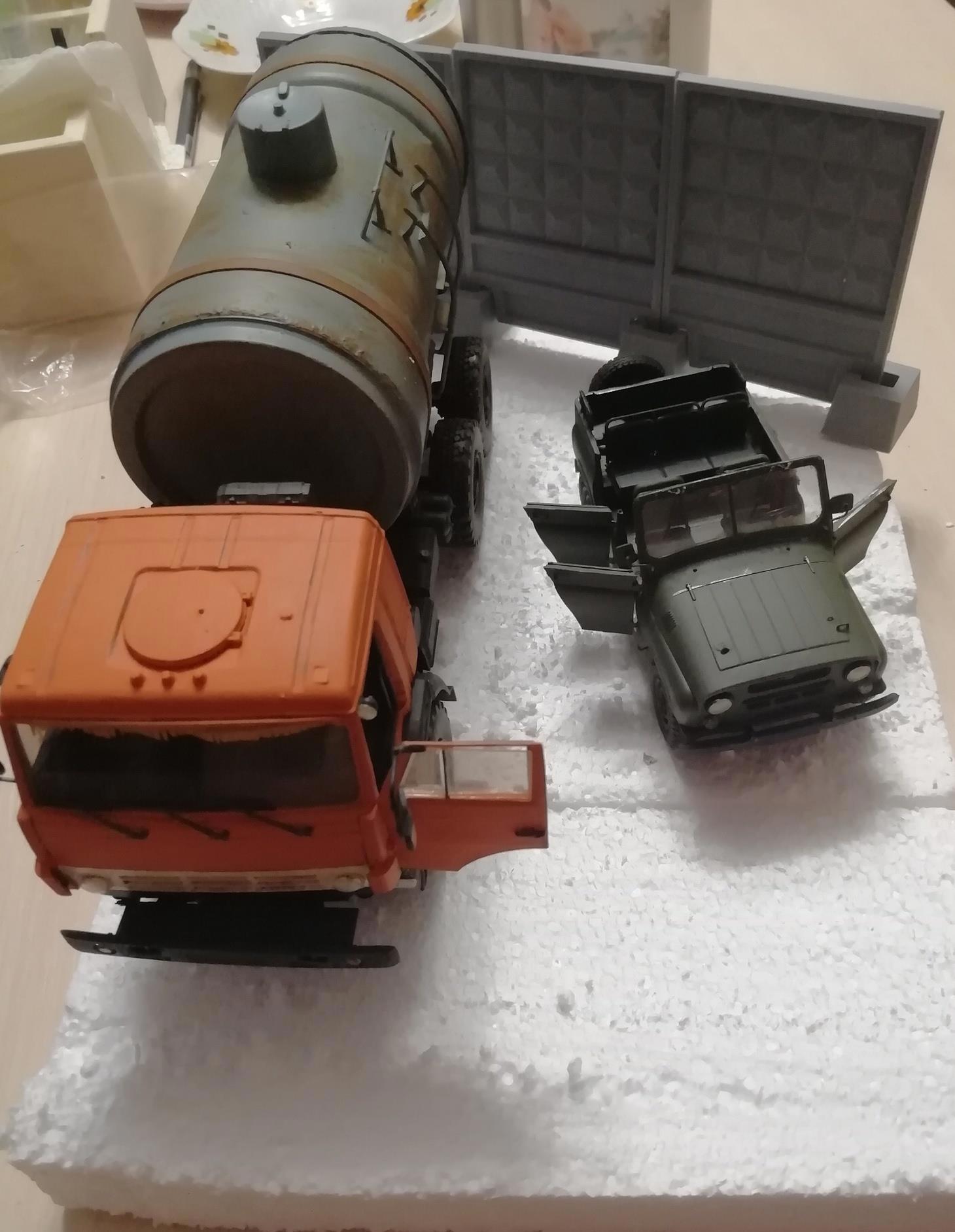 Автор: Николай Владимирович БеляевНаконец-то сподобился собрать из имеющихся обрезков пенопласта подставку под диораму по миру "Серебряной осени" "бензовоз+Патруль". Примерная концепция - что-то вроде этого:
