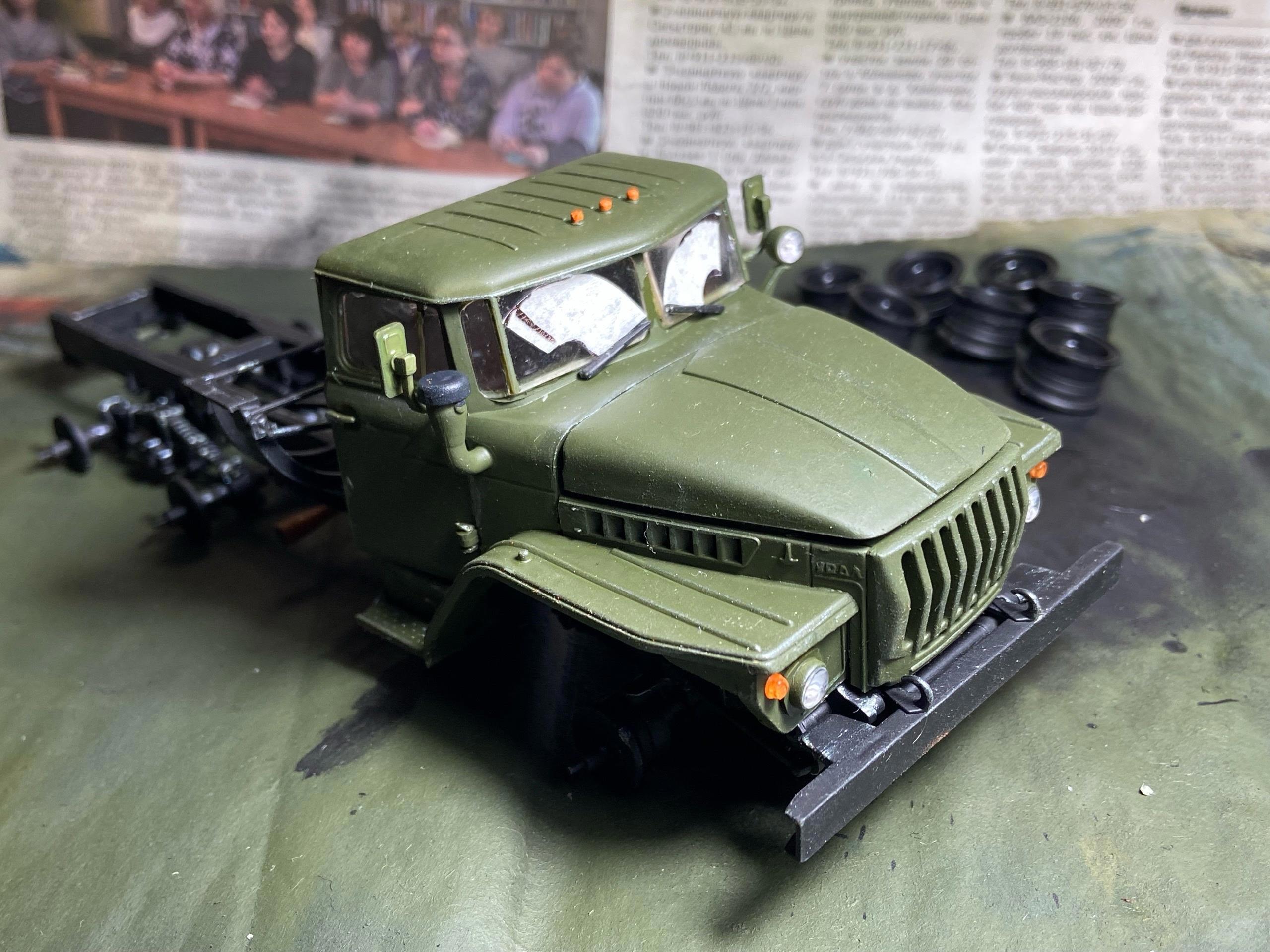 Выкрасил сегодня диски колёс Урала, приладил фары, габариты, зеркала и дворники, и наложил маски под работу дворников для задувания пылью:
