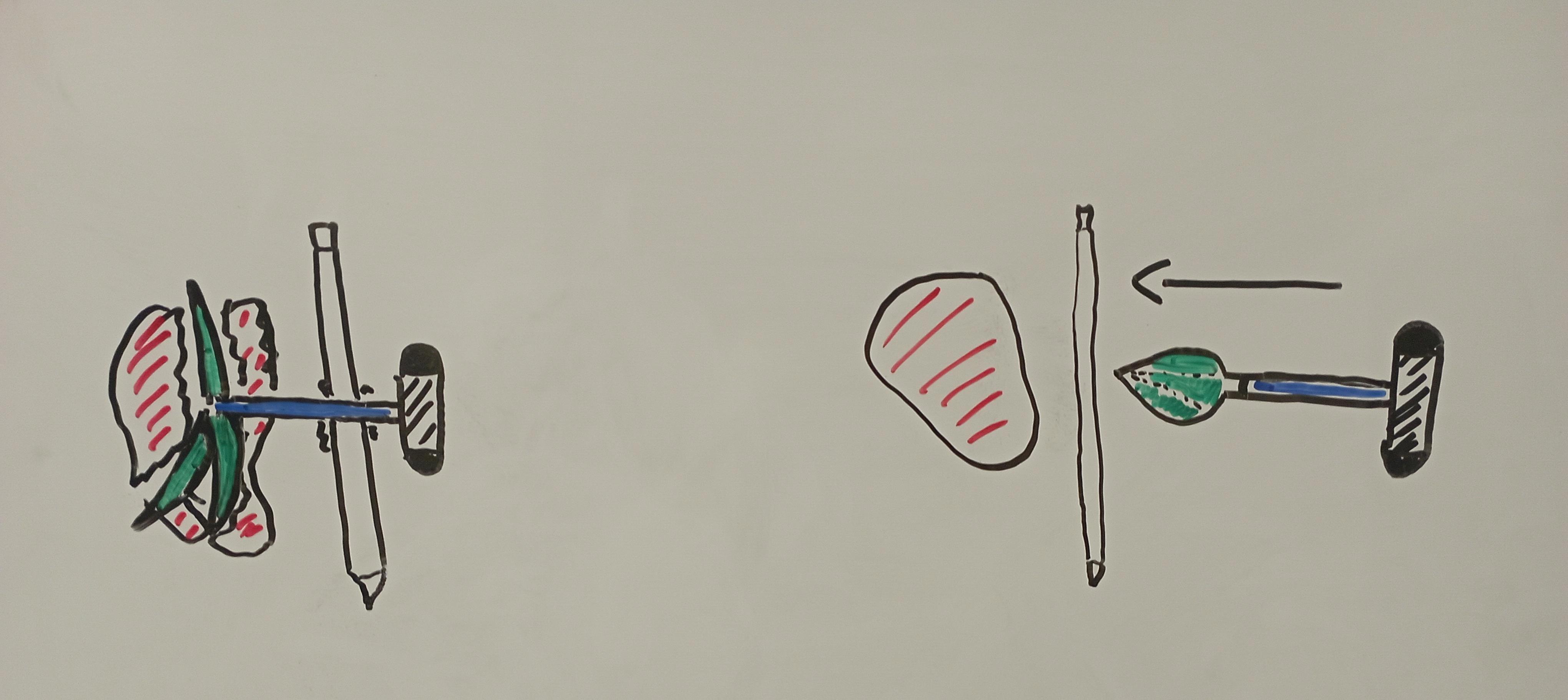 3) ручной: бутон раскрывался по нажатию на кнопку, расположенной на рукояти. Использовался для особо крупных существ со слишком толстой грудиной. Удар наносился в область абсолютной сердечной тупости.