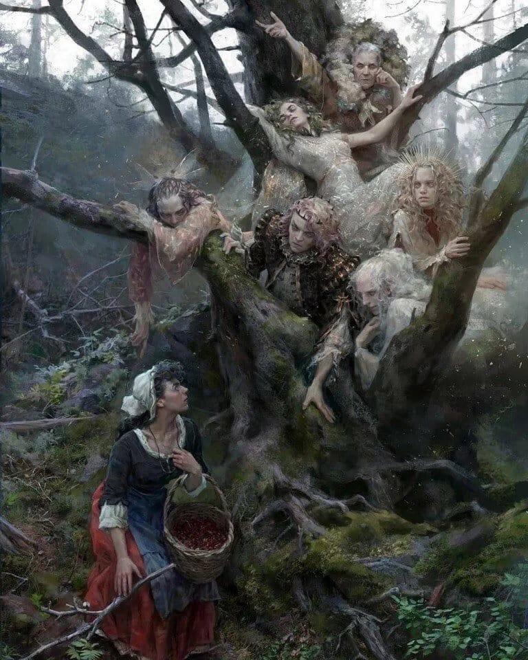 Ночь прекрасна, полна обмана – у холмов танцевали феи в платьях, сотканных из тумана, в аметистовых ожерельях. В звездном свете холмы раскроет волшебство королевы летней, серебрится полынью поле, белый вереск колышет ветер. На заре луга заалеют, солнце встанет, холмы согрея, значит, время исчезнуть феям. Неужели ты в них не веришь?.. Приходи в древний лес под вечер и испей медового эля, нежно ляжет туман на плечи, блеск фиалковый ожерелья ослепит - и не вспомнишь, смертный, где ты жил, и как тебя звали... У холмов танцевали феи и тебя семь столетий ждали. Юлия Рудышина | Ещё не тронул сединой туман зелёные холмы, Цветёт природа. Ещё рогов тревожный вой не будит сонные умы, Но год за годом, Едва луна прольёт с небес холодный августовский свет, Вползает в сердце Бессонный зов. Он манит в лес, где ничего, как будто нет, Лишь ночь и вереск... Ещё свободна тетива и не наточен хищный нож, И дремлют кони, Но тихо шепчется молва: беги. Беги, чего ты ждёшь? Они догонят! Они и впрямь догонят всех, кому судьба добычей стать В большой Охоте. Пока же слышен звонкий смех и льются песни у костра. В полоборота Сидит в рубахе алой тот, чей рог беззвучен до поры И пьёт из кубка... Пей с ним. Судьба тебя найдёт сама для танца и игры. А он даст руку. А он тебе поможет встать, не стать мишенью в этот миг, Придержит гончих... Однажды ты захочешь стать одним из тех, кто скачет с ним... Ещё захочешь. Мария Фроловская | У меня по венам черника и бергамот, У меня сквозь кожу пустырник и резеда. Что ни делай, только моя беда День и ночь стоит у твоих ворот. На гнилушках вспыхивают огни - Духи леса пускаются в дикий пляс, Повторяют: "Сестрица, в который час Душу чистую ты приведешь в силки?" Только мне самой жаль твоей души, Я ее другим не отдам вовек: Из железа выкую оберег, Чтоб не тронул тебя ни один из Ши. А пока, спи рядом, мой человек. КостЕНика |