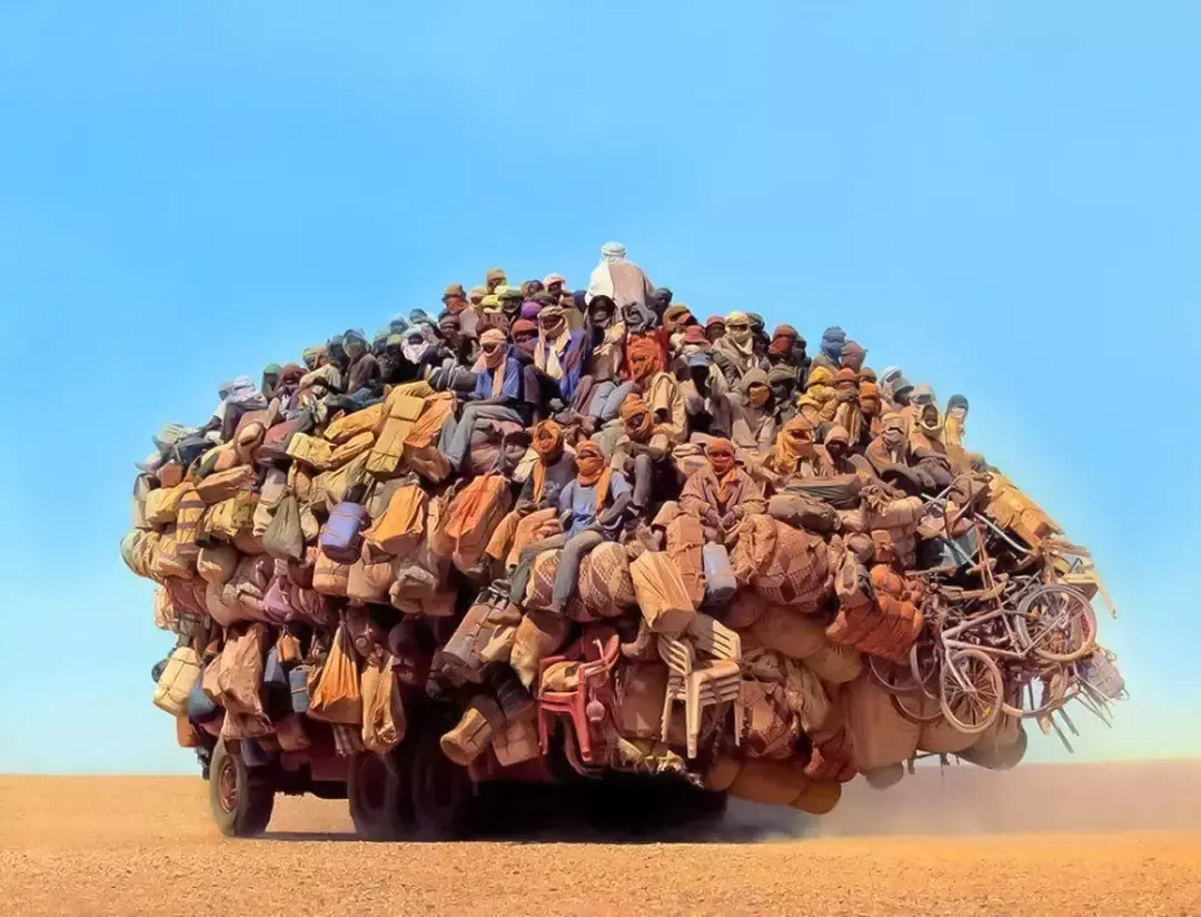 Где-то в Сахаре. Очень сильно перегруженное пассажирское средство передвижения