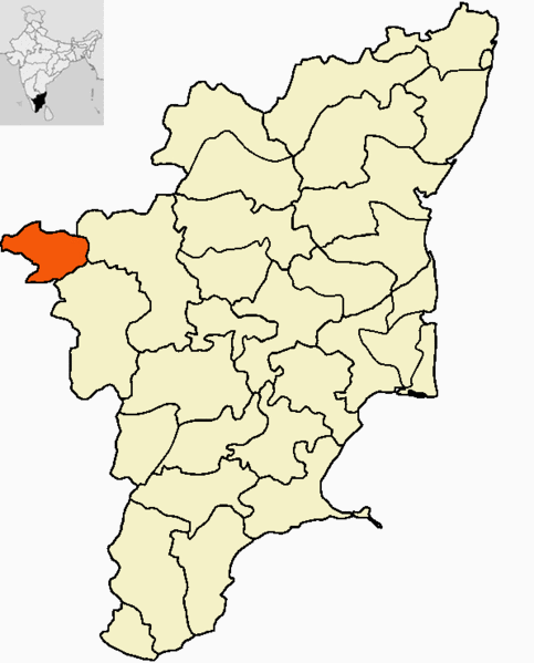 Местоположение округа Нилгири (англ. Nilgiris) на карте индийского штата Тамилнад.