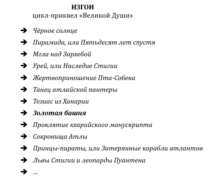 Дальнейшие работы (см. ниже) так или иначе анонсировалось в книгах, но пока не написаны, и никаких обязательств на этот счёт я брать не вправе. На всё воля Судьбы!