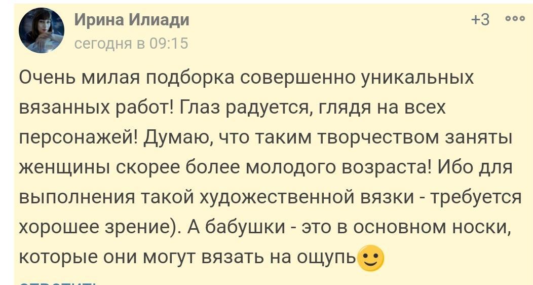 N.B. Я сделал множество публикаций о народных промыслах. В основном русских. Пару раз это было о канадских и один раз о чешском искусстве стеклодувов. И вот мне несколько раз попались вязаные игрушки. Они были такие милые и трогательные, что я не удержался и решил их вам показать. Вот никогда бы не подумал, что эти смешные вязаные "чибики" могут быть такими милыми. Самое интересное, что вяжут многие женщины разных возрастов в разных странах. Но больше всего, на мой взгляд, это все же относится к женщинам более старшего возраста.