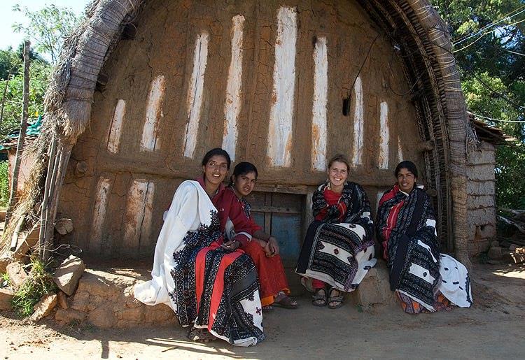«...Склон горы порос густыми джунглями. Через джунгли наверх идет широкая тропа. Я поднимаюсь по тропе, и совсем неожиданно у самой вершины возникает необычный поселок. Покрытые тростником пять хижин, похожие на кибитки кочевников. Хижины обнесены изгородью, сложенной из грубых, неотесанных камней. Над полукруглыми кровлями кибиток-хижин нависает вершина горы. Чуть повыше виден загон для буйволов. Я останавливаюсь у крайней хижины. Из низкого входа ее, согнувшись, выползает человек. Он распрямляется и пристально вглядывается в меня. Человек высок, окладистая с проседью борода спускается на грудь, длинные волосы лежат по плечам, глаза, широко открытые, смотрят приветливо а немного испытующе. Путукхули[1], украшенный красными и черными полосами, скрывает руки и спускается чуть ниже колен его босых ног. В руках человек держит посох. И тут я сразу осознаю, что ничего подобного я не встречала в Индии и вряд ли смогу встретить. Передо мной стоял кто угодно, но только не уроженец Южной Индии. Относительно светлая кожа, длинный широкий нос, тонкие губы и светло-карие глаза свидетельствовали о том, что человек не имел отношения к дравидам Южной Индии…»