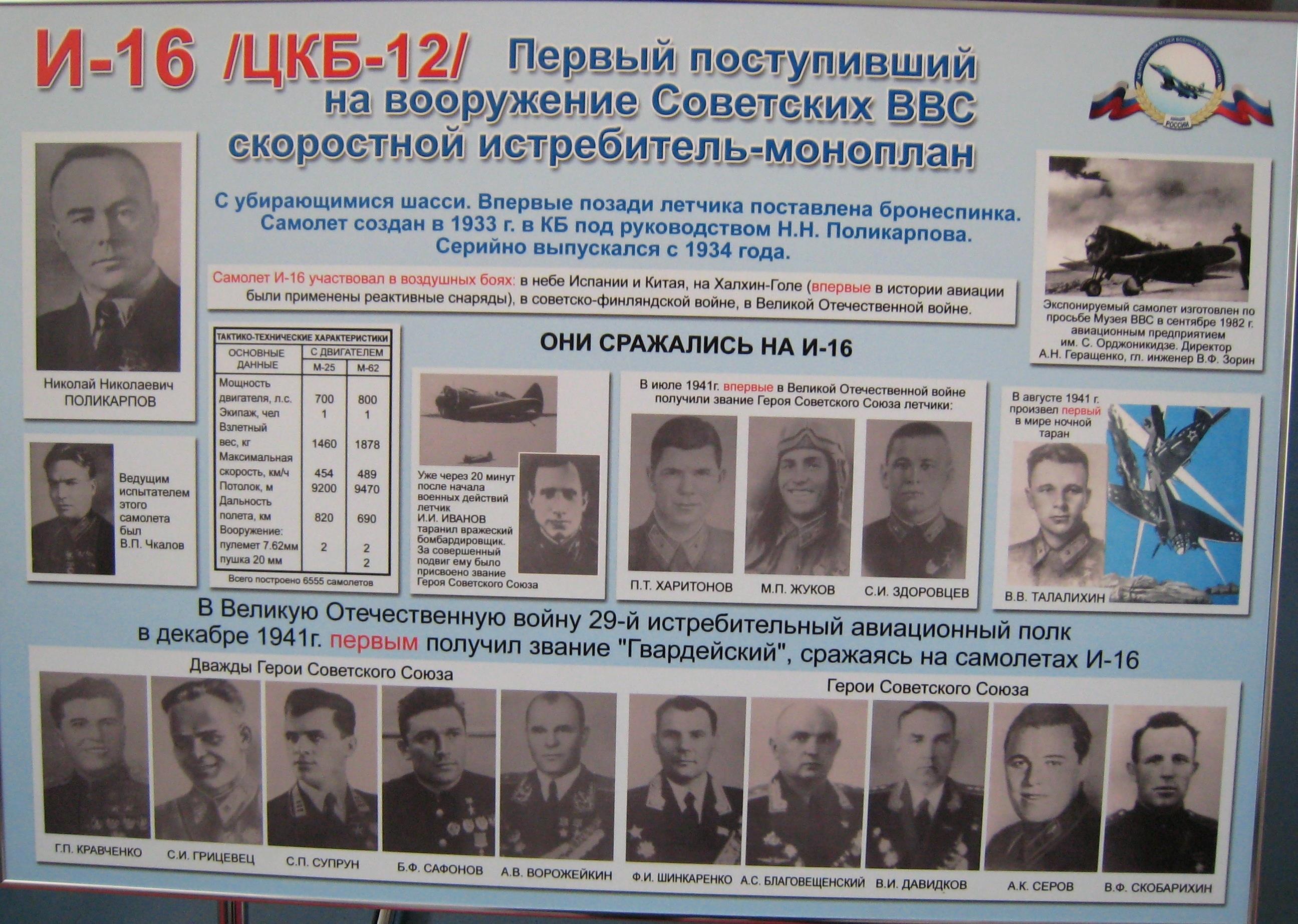 Сам конструктор, характеристики самолета и летчики, летавшие на И-16. В том числе В. В. Талалихин, совершивший первый ночной таран.